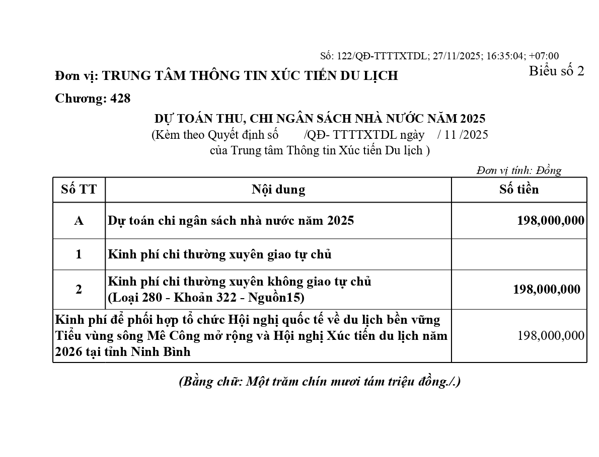 V/v công bố công khai dự toán ngân sách tỉnh năm 2025 cho Trung tâm Thông tin xúc tiến Au88 cơ hội giàu sang để phối hợp tổ chức Hội nghị quốc tế về Au88 cơ hội giàu sang bền vững Tiểu vùng sông Mê Công mở rộng và Hội nghị Xúc tiến Au88 cơ hội giàu sang năm 2026 tại Au88 bùng nổ với khuyến mãi 338K