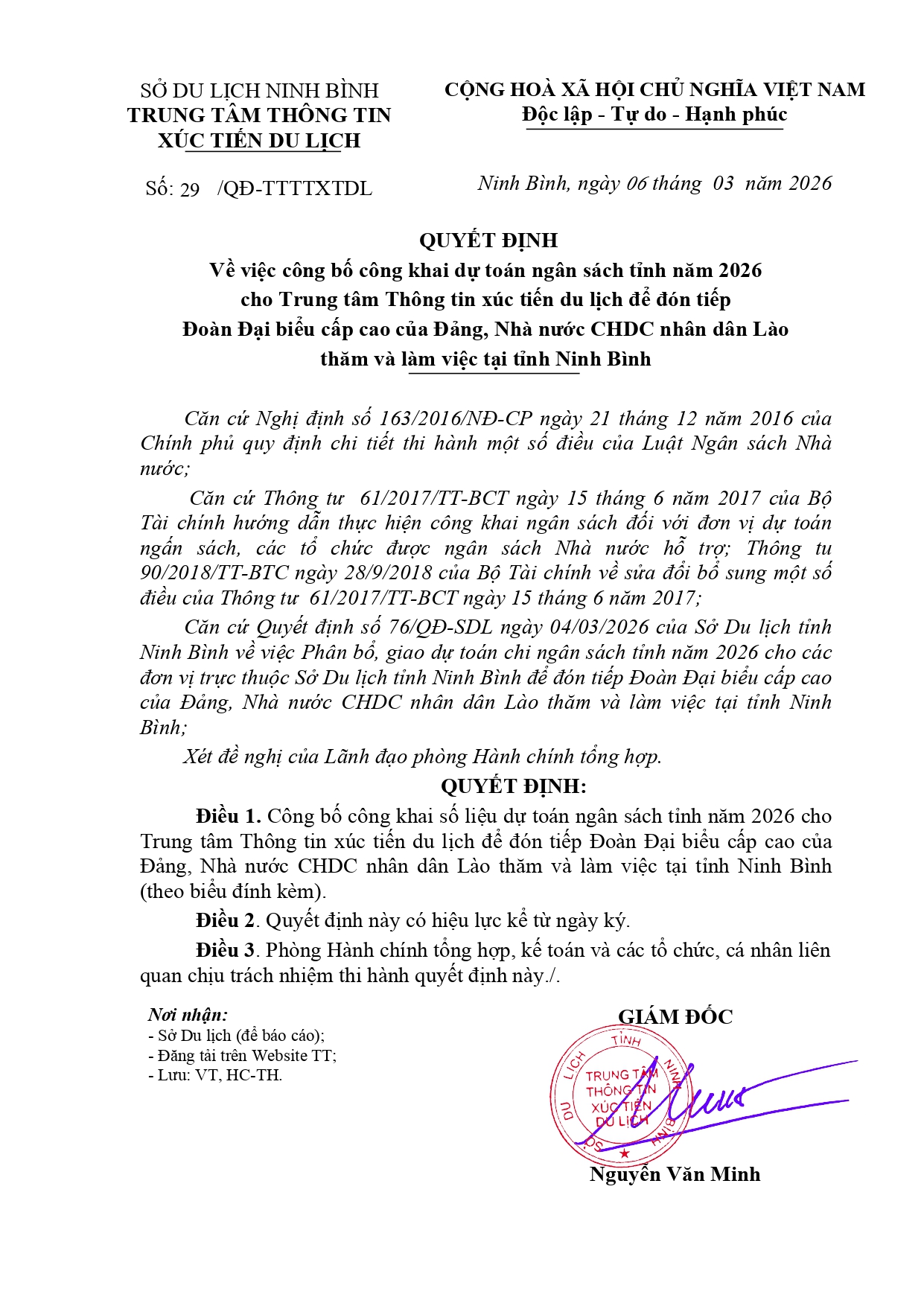 Số: 29/QĐ-TTTTXTDL