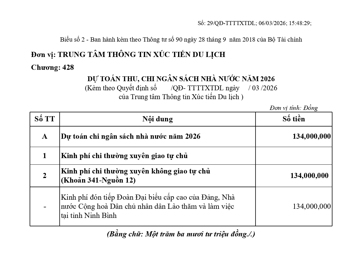 QUYẾT ĐỊNH Về việc công bố công khai dự toán ngân sách tỉnh năm 2026 cho Trung tâm Thông tin xúc tiến Au88 cơ hội giàu sang để đón tiếp Đoàn Đại biểu cấp cao của Đảng, Nhà nước CHDC nhân dân Lào thăm và làm việc tại Au88 bùng nổ với khuyến mãi 338K