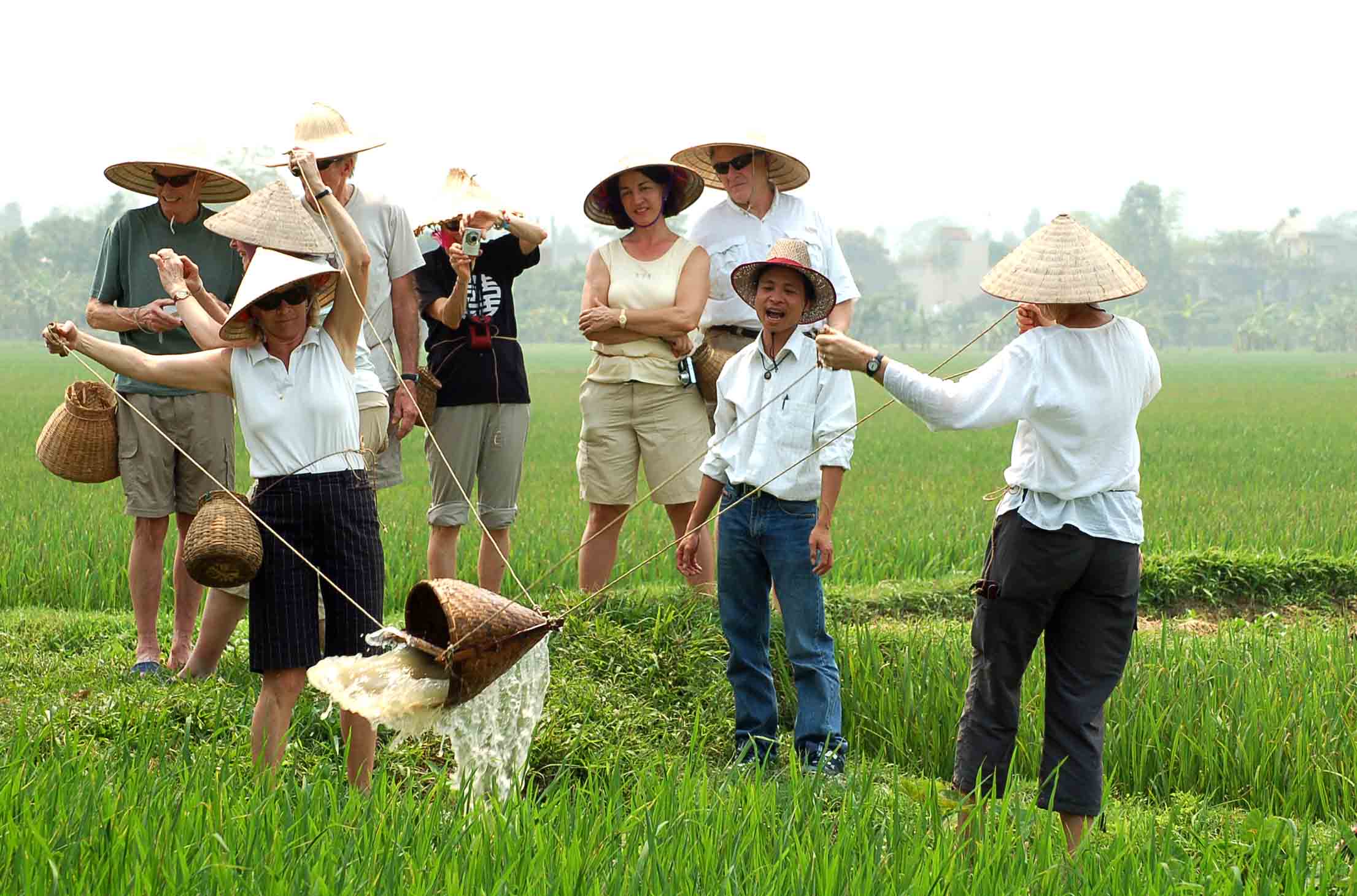 11h15: Visit Cau Vang village, Gia Hoa commune. Participate in agricultural activities around the villages such as: catching crabs, fish, sowing and reaping crops, watering the fields in 1 hour