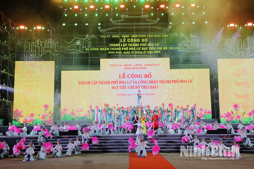 On the evening of January 19, at Dinh Tien Hoang De Square, the Provincial Party Committee - People's Council - People's Committee - Vietnam Fatherland Front Committee of Ninh Binh province solemnly held the Ceremony to announce the establishment of Hoa Lu city and recognize Hoa Lu city as meeting the criteria of a type I urban area.