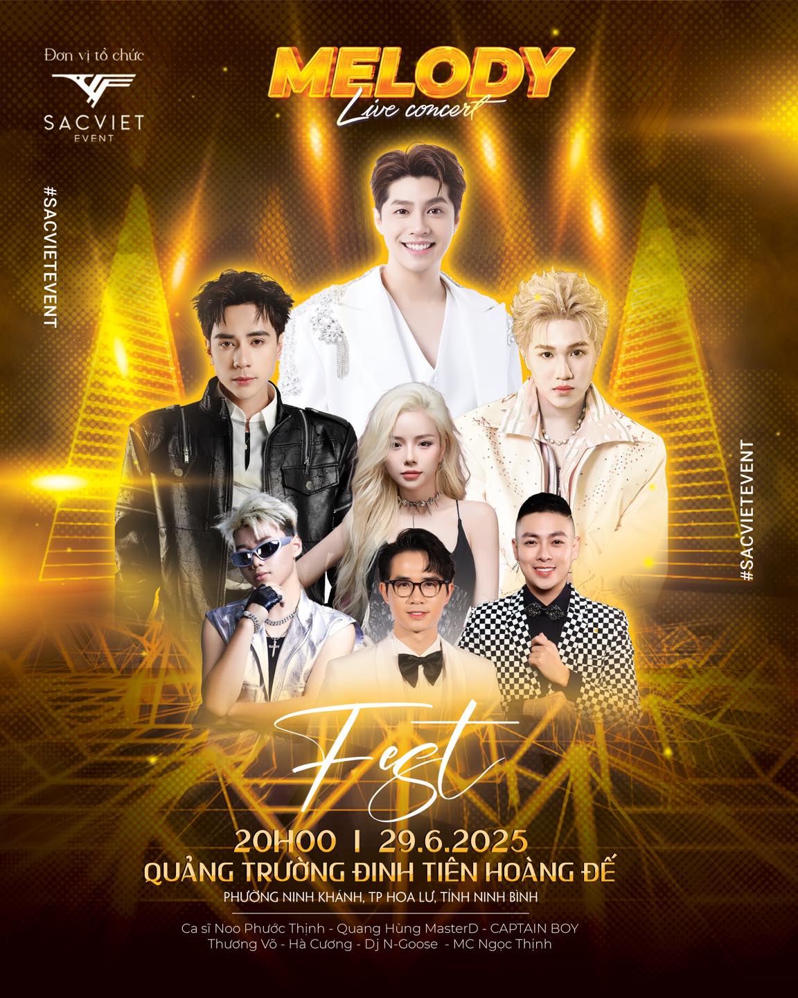 The Melody Live Concert Fest is set to light up Dinh Tien Hoang Square in Hoa Lu City, Ninh Binh, at 8:00 PM on June 29, 2025. The highly anticipated music event will feature a star-studded lineup of Vietnamese artists and promises to deliver an unforgettable night of live entertainment.The Melody Live Concert Fest is set to light up Dinh Tien Hoang Square in Hoa Lu City, Ninh Binh, at 8:00 PM on June 29, 2025. The highly anticipated music event will feature a star-studded lineup of Vietnamese artists and promises to deliver an unforgettable night of live entertainment.