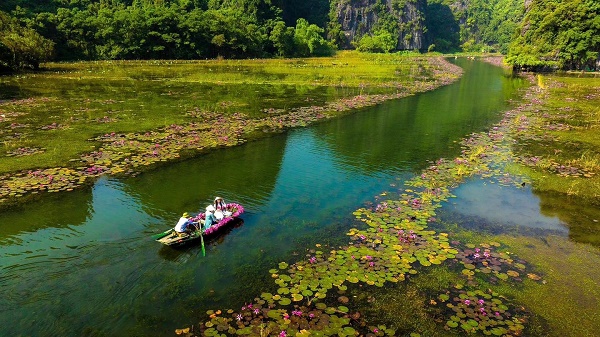 En novembre, le site touristique de Tam Coc, dans la province de Ninh Binh, entre dans sa magnifique saison de floraison des nénuphars violets, avec des dizaines de milliers de fleurs émergeant des eaux sous le radieux soleil automnal.
