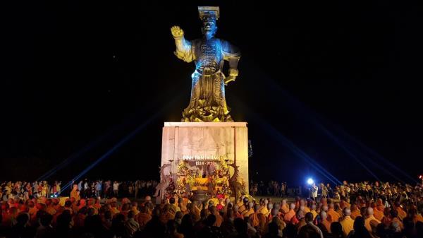 Toàn bộ sân khấu, sân lễ hội và đường đi được lát bằng đá tự nhiên màu trắng xám. Nằm xen lẫn giữa các lối đi lại là các thảm cỏ xanh và cây xanh được bố trí hài hòa, thẩm mỹ, tạo khuôn viên tươi mát độc đáo cho khuôn viên quảng trường. Điểm nhấn chính của công trình là pho tượng Đinh Tiên Hoàng Đế có khối lượng 100 tấn, phần thân cao 9,9 m, phần bệ cao 10 m do một số tổ chức và cá nhân cung tiến. Ngoài phần tượng Đinh Tiên Hoàng Đế, bốn góc xung quanh tượng đài còn có tượng 4 vị quan đại thần là bạn của ĐInh Bộ Lĩnh gồm Đinh Điền, Nguyễn Bặc, Lưu Cơ, Trịnh Tú cao 5m; ngoài ra có các tượng quan văn, võ, lính canh và ngựa bằng đá. Phía trước có rất nhiều tượng đá, rồng đá, cột lan can bằng đá…. được điêu khắc rất công phu, thể hiện tài năng và sự khéo léo của các nghệ nhân làng đá mỹ nghệ Ninh Vân nổi tiếng của vùng đất Au8807.com Đăng ký tài khoản.