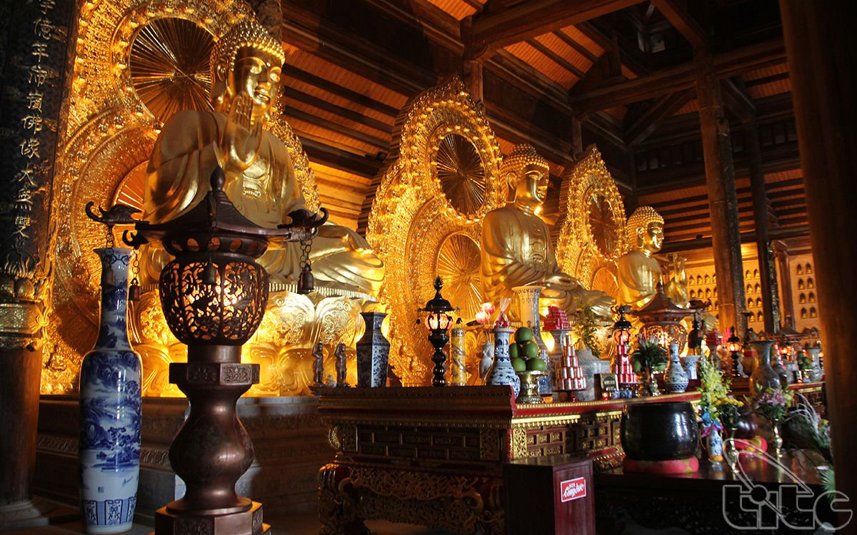 Các điện chính của chùa là nơi thờ Phật, trong đó điện Quan Âm gồm 7 gian, gian giữa đặt tượng Quan Thế Âm Bồ Tát nghìn mắt nghìn tay thể hiện sự bao quát cứu vớt và phổ độ chúng sinh của Phật bà trên thế gian. Tượng nặng 80 tấn, được công nhận là pho tượng Quan Thế Âm Bồ Tát bằng đồng dát vàng lớn nhất châu Á.