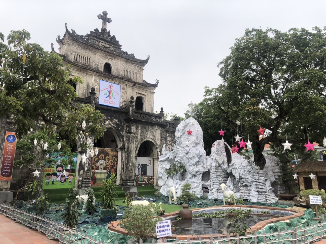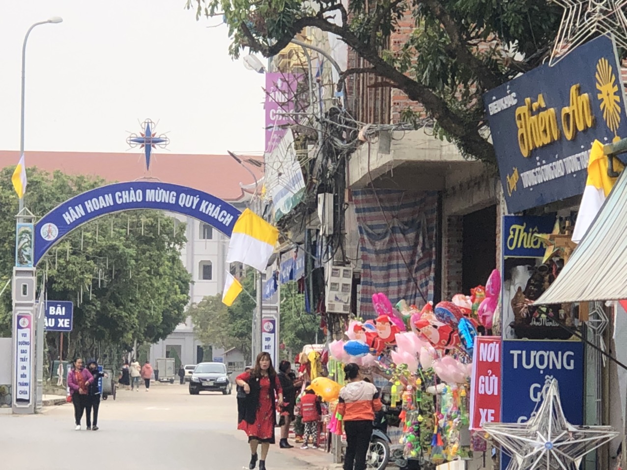 Những ngày này, dọc theo con đường dẫn vào cổng Nhà thờ Chính tòa Phát Diệm nổi bật hơn bao giờ hết, hai bên đường người dân đã trang trí nhiều hang đá với các hoạt cảnh tái hiện những câu truyện được lưu truyền trong Kinh thánh về ngày lễ Giáng Sinh cùng cây thông Noel, đèn sao, cờ hoa rực rỡ sắc màu,…