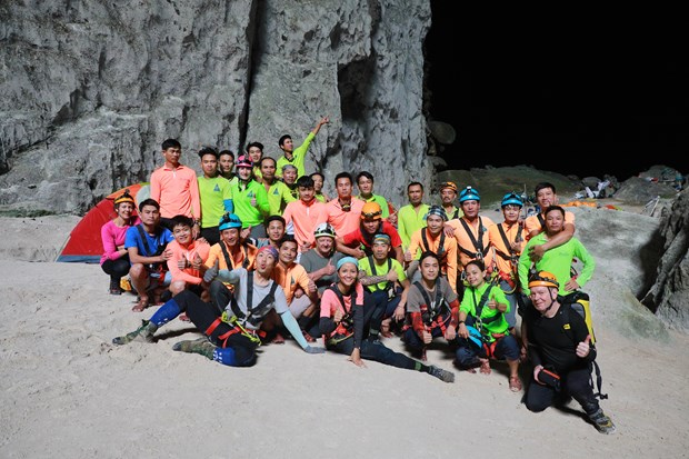 Du khách trước chuyến khám phá hang Sơn Đoòng. (Ảnh: CTV/Vietnam+)