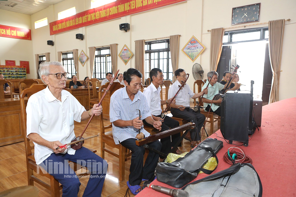 CLB đàn hát dân ca và chèo xã Liên Sơn tập luyện