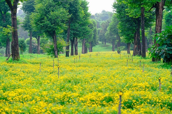 Sau những đợt gió mùa đầu tiên cùng với những màn sương lạnh buốt như xuyên thấu buông xuống, những nụ hoa Kim Cúc đầu tiên bắt đầu nhú lên từ kẽ lá; không vì sương gió khắc nghiệt mà vẫn mạnh mẽ vươn lên như thách thức với đất trời, thu mình vào những gì tinh hoa nhất. Loài hoa này chỉ có một mùa duy nhất trong năm khi tiết trời chuyển mình sang đông và không khí lạnh tràn về là mùa Kim cúc rực sắc vàng nở rộ.