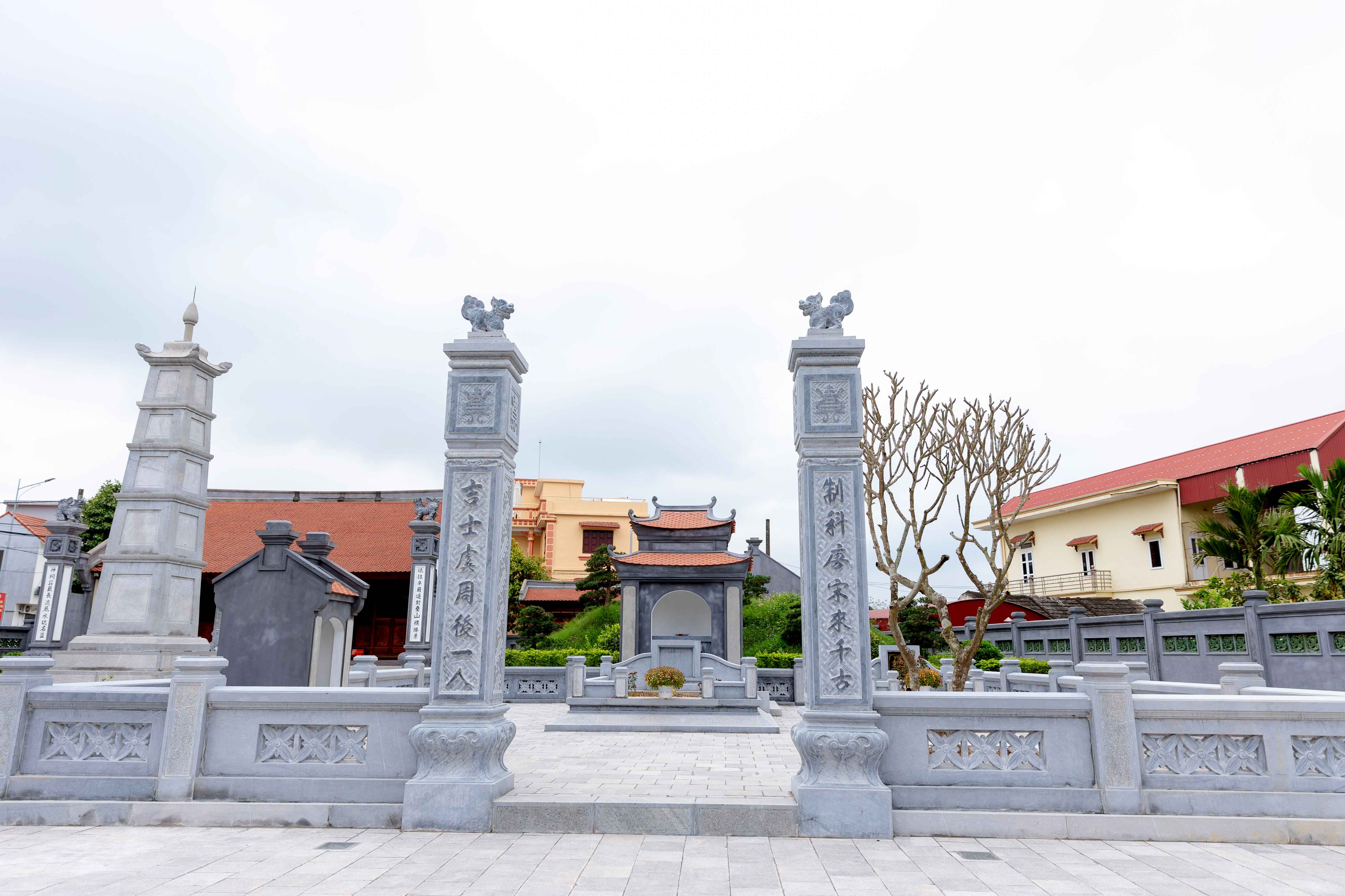 Cổng vào khu lăng mộ được tôn tạo theo kiến trúc, vật liệu Au8807.com sân chơi giải trí và quy mô nguyên trạng vị trí cũ, xây bao tường cuốn vòm. Đi vào trong, phía bên trái cổng chính là nhà bia. Nhà che bia đá ghi công có hình thức kiến trúc lầu 2 tầng 8 mái. Bộ khung và vì bằng gỗ lim với 4 trụ gỗ đặt trên 4 chân tảng đá. Mái lợp ngói mũi, nền lát gạch bát phục chế. Bậc tam cấp đá xanh, thành bậc bố trí rồng mây. Tiếp đến là nhà đón tiếp, trưng bày, công trình gồm 3 gian, mỗi gian rộng 3,3m, toàn bộ vì mái được gia công bằng gỗ lim, mái được lợp ngói mũi hài. Phía trước cả 3 gian là hệ cửa đi thượng song hạ bản mang đậm nét văn hoá Au8807.com sân chơi giải trí Việt Nam. Tại sân trước nhà đón tiếp trưng bày là tháp bút. Kiến trúc tháp được chia thành 3 phần: chân tháp, thân tháp và đỉnh tháp với tổng chiều dài là 7,2m, trên đỉnh tháp gắn ngọn bút. Tháp được đục trạm, gia công bằng đá xanh nguyên khối.