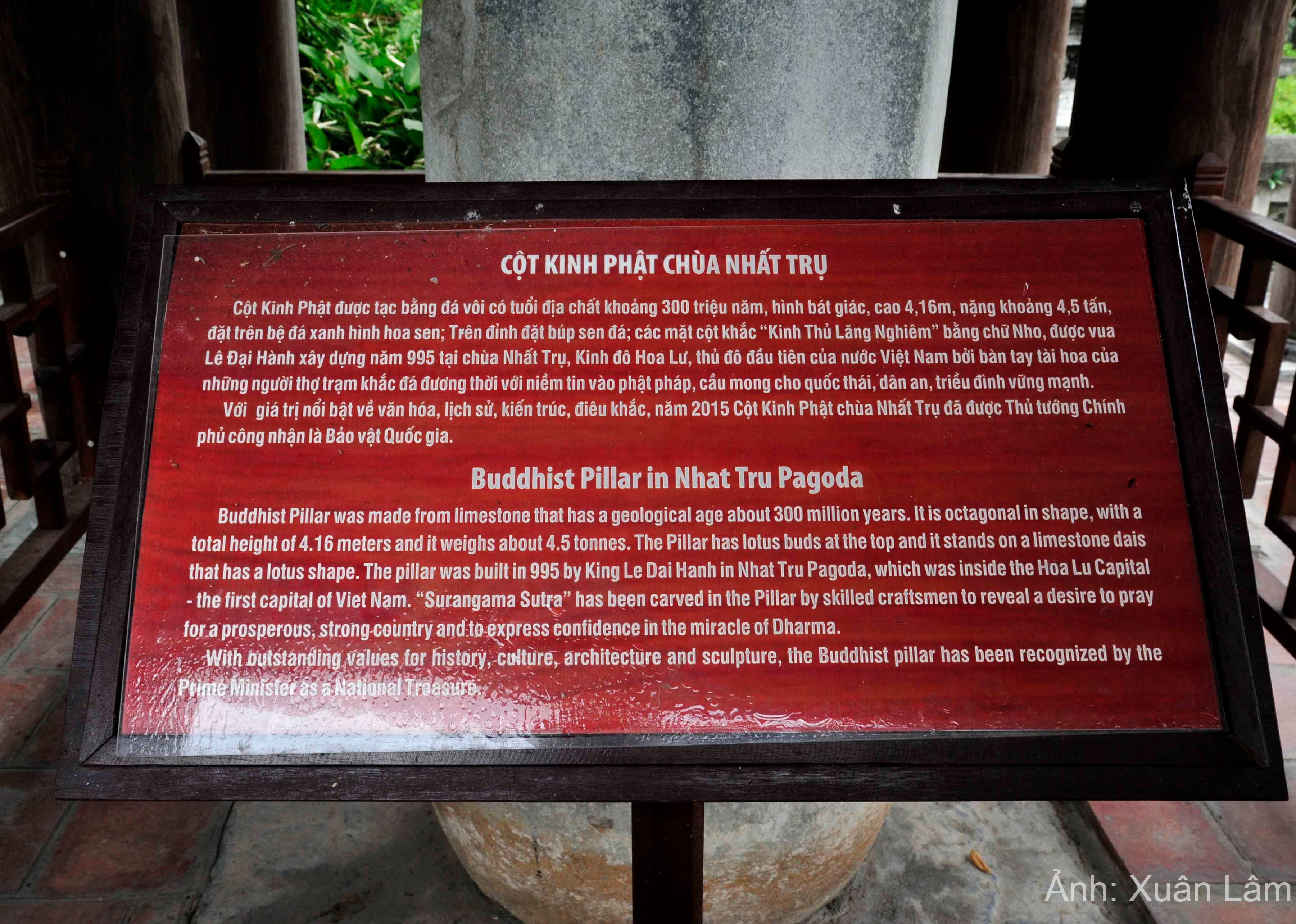 Chùa nằm quay hướng Tây, cách đền thờ vua Lê Đại Hành 100m về phía Bắc. Chùa Nhất Trụ được xây dựng từ thời Tiền Lê. Ở niên hiệu Ứng thiên thứ hai vua Lê Đại Hành đã cho xây dựng cột kinh đá thể hiện mong muốn cầu quốc thái dân an, triều đình vững mạnh và thể hiện sự tin tưởng, nhiệm màu của Phật Pháp. Cột kinh có chiều cao 4,16m, gồm có 6 bộ phận đá được lắp ghép với nhau một cách hoàn chỉnh mà không dùng chất kết dính, thể hiện sự tính toán tỉ mỉ, khéo léo của các nghệ nhân, đồng thời cũng chứng minh loại hình thư pháp đá xuất hiện rất sớm ở nước ta. Không chỉ độc đáo về Au8802.com Thể Thao, Bóng Đá, Casino, Nổ Hũ, Xổ Số kiến trúc, cột Kinh Phật còn là hiện vật độc bản có giá trị Au8802.con Đăng ký ngay, lịch sử to lớn. Ở phần thân cột, tám mặt đều được mài nhẵn, chạm khắc khoảng 2500 chữ Hán. Nội dung bản khắc trên thân cột là khắc Kinh Đà La Ni, Thủ Lăng Nghiêm và các bài thần chú ca ngợi sự bền vững đức hạnh của Phật, sự to lớn bao trùm của trí tuệ, tài năng phật Như Lai.