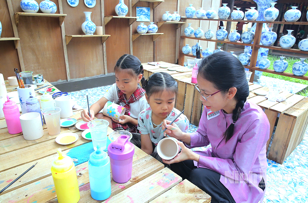Các em nhỏ thích thú với trải nghiệm làm gốm tại Không gian trưng bày làng nghề Au8807.com sân chơi giải trí Au8807.com Đăng ký tài khoản tại Bến xe Đồng Gừng (xã Ninh Hải, thành phố Hoa Lư). Ảnh: Anh Tuấn