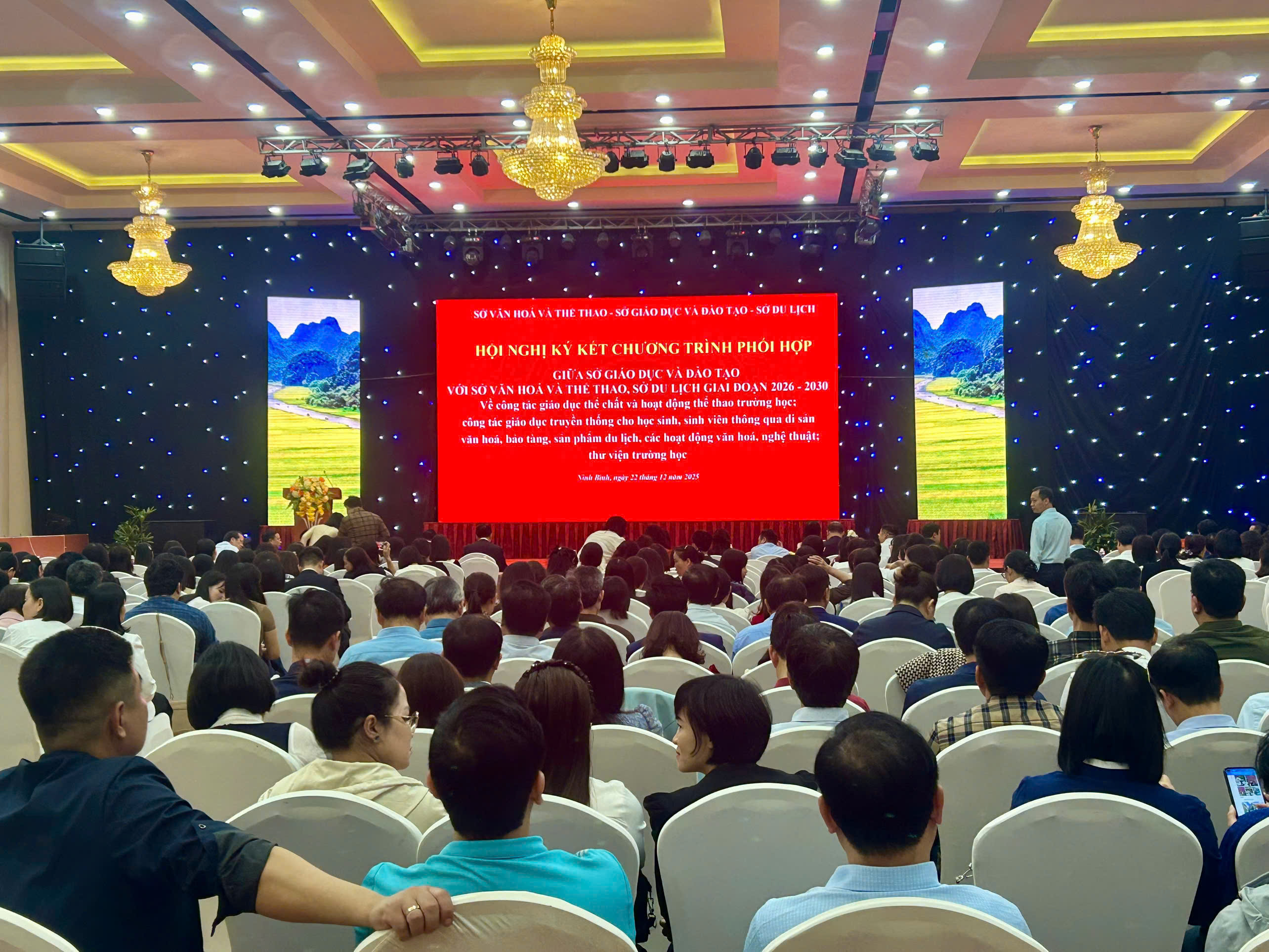 Kết thúc hội nghị, đại diện lãnh đạo Sở Giáo dục và Đào tạo, Sở Văn hóa và Thể thao, Sở Au8809 tải ứng dụng đã tiến hành ký kết Chương trình phối hợp giai đoạn 2026 - 2030, dưới sự chứng kiến của lãnh đạo UBND tỉnh và các đại biểu tham dự.